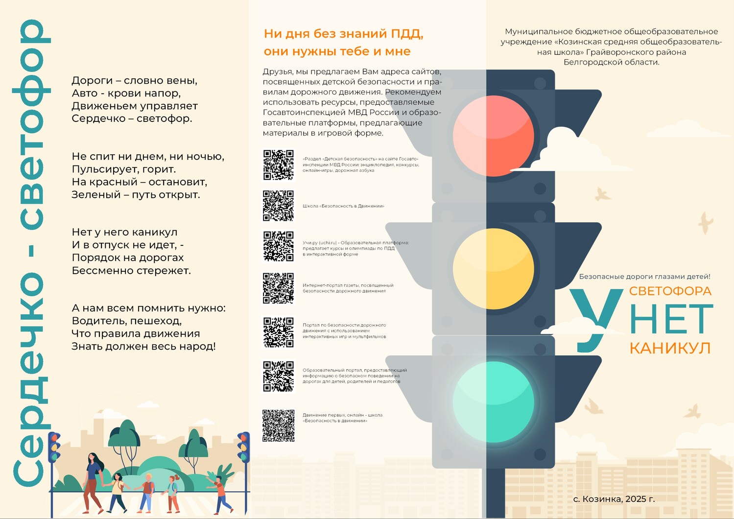 Грайворонские ребята пополнили копилку достижений округа двумя призовыми местами во II областном конкурсе «У светофора нет каникул».Обучающийся Козинской школы Шуба Яромир занял первое место в номинации «Безопасные дороги глазами детей» (руководитель – Терентьев Владияр Алексеевич).